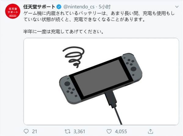 IT之家1月30日消息 根据任天堂支持官方推特的消息,Switch游戏机内置的电池,如果长时间不充电也不使用的话,有可能无法充电,至少每半年充电一次。
