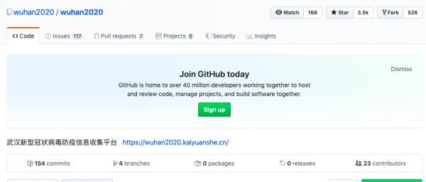 wuhan2020是由同济和华师x-lab实验室于1月26日发起的开源项目,该项目希望能借助开源平台与开源技术,汇聚力量解决疫情信息交流不通的难题。截至发稿时,该项目已经获得3500以上的star。