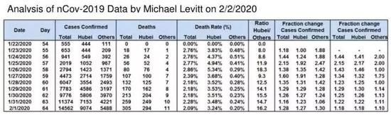 接下来我们将Michael Levitt教授做的疫情分析给大家简单介绍一下。