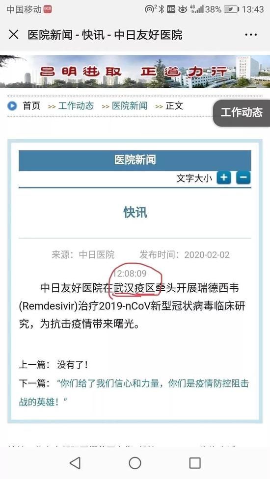 中日医院官方也发表快讯,证实了临床试验已经开始。
