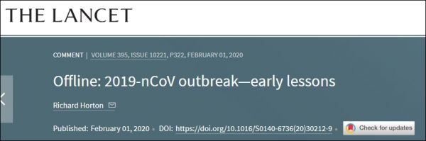 2019新冠病毒疫情的初期教训 截图:《柳叶刀》主页
