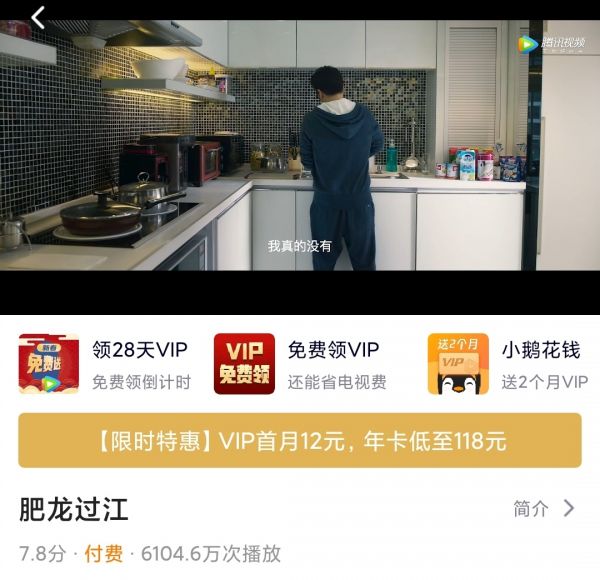 与《囧妈》在西瓜短视频等平台免费观看不同,《肥龙过江》选择的是在爱奇艺和腾讯视频两家视频平台上进行单点付费观看。