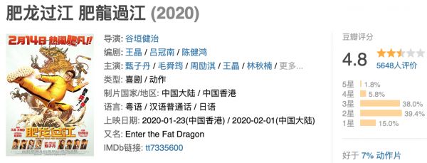 《肥龙过江》的豆瓣评分为4.8分(图片来源:豆瓣电影)