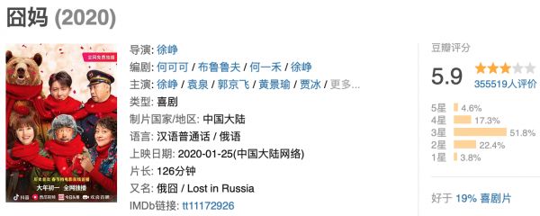 《囧妈》豆瓣评分为5.9分(图片来源:豆瓣电影)