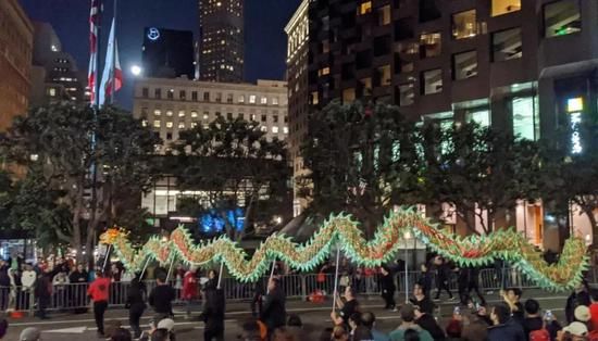 在对肺炎病毒的恐惧之中,为了庆祝中国春节,旧金山仍然热热闹闹举办了正月十五的花灯游行,警车开道,十字路口炸了一串又一串的鞭炮。冬夜里围观叫好的观众大多不是华人,各种肤色的人在喊:“新年快乐!”