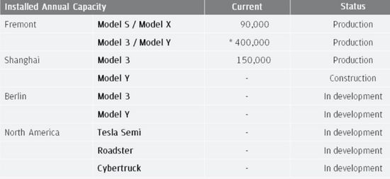 特斯拉突破产能瓶颈之后,交付不再成为问题。截至2019年末,特斯拉在美、中的两个生产基地已经投资,年化产能达64万辆(2020年下半年将提高到74万辆)。