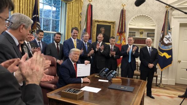 图:美国总统唐纳德·特朗普盛赞市值达万亿美元的四大科技公司,并称他们为“Maga俱乐部”