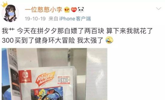 《健身环大冒险》于2019年10月18日正式发售,作为一款switch的角色扮演游戏,最初在亚马逊享受折扣后购买价格在500元左右,国内甚至有网友@一位憨憨小李表示,通过各类优惠叠加到手价仅300多元。