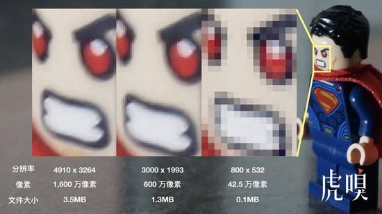 相机在像素战争期间,照片的分辨率不断攀升。图片来源:ThoughtsforFree。 但像素和分辨率就不同了。它是一组可以对比的客观数值,而且通过放大细节,就能很直观地让消费者体现相机升级的效果。因此,当年的相机公司热衷于攀比像素,使相机的分辨率在10年之间增加了数十倍。由于手机的用户对摄影更不内行,对分辨率与摄影能力之间的也不太了解,故此,在手机上的像素战争,更为激烈。所以三星和小米,就使用了连专业摄影机也自口叹不如的1亿像素相机。