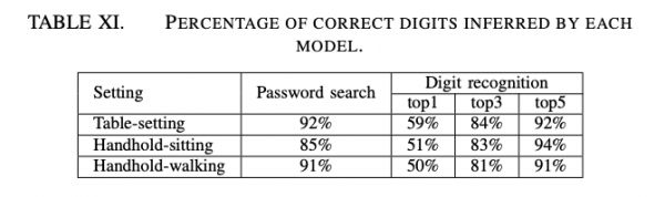 雷锋网注意到,为了测试实际场景中的效果,在论文中,研究者还进行了一个基于现实场景的信息攻击实验。在这一实验中,被攻击者通过打电话索要一个密码,而实验的目标就是利用被攻击者所使用的手机的加速度计定位和识别会话中的密码——结果显示,在 240 次会话测试中,成功定位并识别密码的次数的超过 85%。