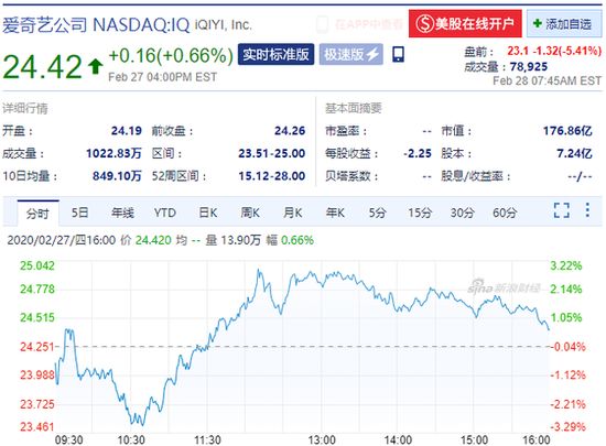 新浪科技讯 2月28日晚间消息,爱奇艺美股盘前跌超5%,现报23.1美元。