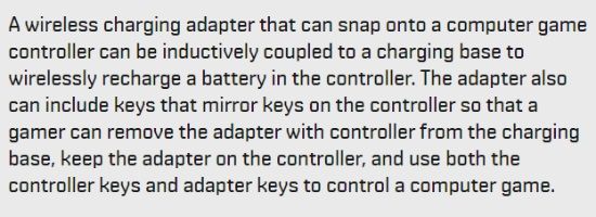 IT之家获悉,这份专利的完整文档中,有这样一段描述:一个可以连接到手柄并感应耦合到充电基座的无线充电适配器,以此实现对手柄的无线充电功能。
