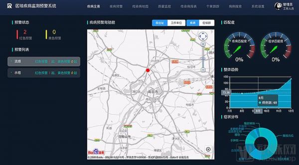 大数医达区域疾病监测预警系统(所有显示仅为展示,不代表任何实际意义)