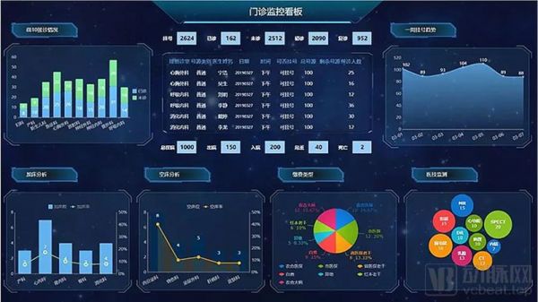 帆软的门诊监控看板(图片由帆软提供,显示仅为展示,不代表任何实际意义)