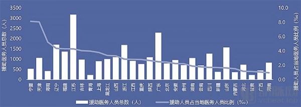 相对而言,宁夏自治区累计派出医务人员536人,但其占当地医务人员总数的比例已经达到8.62%,是当时所占比例最高的。这样的可视化数据对于管理者统筹资源进行决策有着决定性的作用。