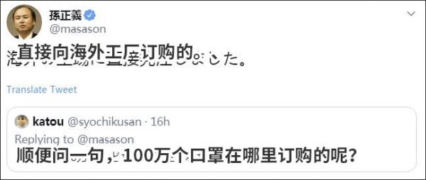 不过这次,日本网友还是不满意,他们觉得孙正义不应该买口罩,应该投资生产口罩。