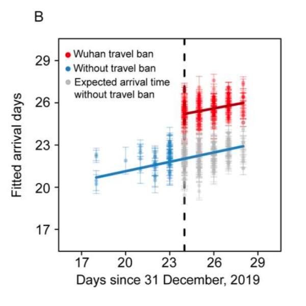 作者们认为,这一推迟为中国各地的防控准备争取了更多的时间。然而,在武汉流出人员已经将疫情带到其他城市的情况下,最终也无法遏制传播。