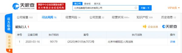 网易科技讯 3月17日消息 天眼查数据显示,3月16日,马蜂窝的运营主体北京蚂蜂窝网络科技有限公司被北京市朝阳区人民法院列为被执行人,执行标的90179。