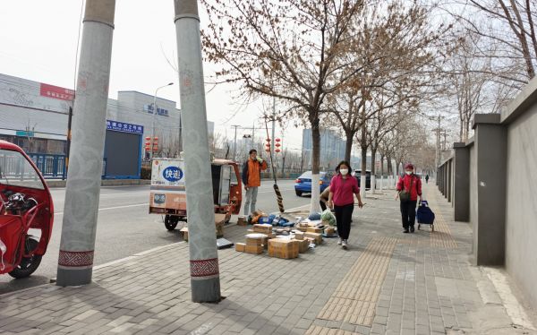 家住朝阳区华腾园的李女士表示,每天各大公司的快递三轮车、外卖车聚在小区门口,等待居民前来取货,快递包裹摆一地成了一景儿,不少老人表示,取快递不太方便。