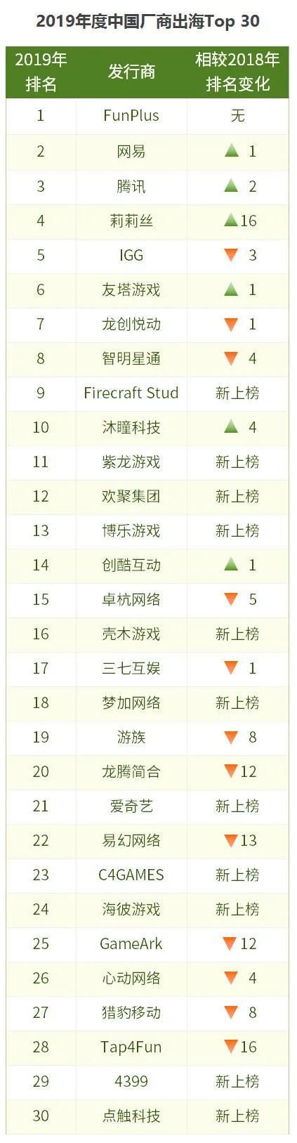 除了以上介绍的几家,其余中国厂商的排名变化则跟海外表现有直接关系。葡萄君稍后将结合“2019年度中国厂商出海30 强”榜单来做进一步分析。