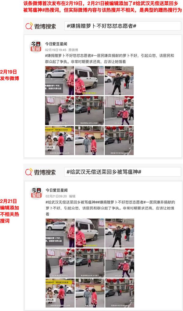 热搜榜能够快速并准确反映出微博用户对热点内容的关注度和方向,已逐渐成为网友发现热点和参与讨论的主阵地之一,优质的内容通过热搜能够获得大量曝光和互动。近期,站方发现有个别用户恶意利用产品机制蹭热搜,即带热搜词发布与热点完全不相关的内容信息,此行为严重影响热点的呈现效果和用户体验。