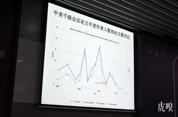引人瞩目的是在学术期刊及专业会议发表论文方面,总数上中国呈现快速接近美国的趋势,在2016之后这一趋势尤其明显。