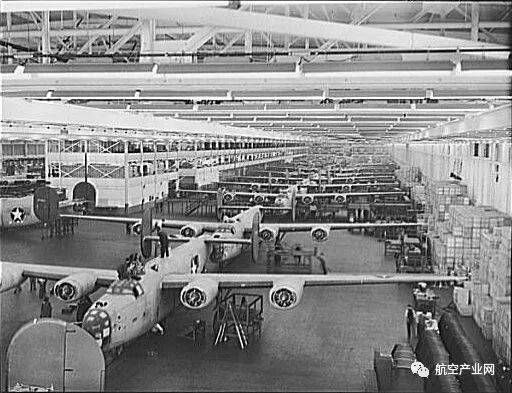二战期间,几乎所有美国汽车制造商都转向了军工生产,特别是航空制造。其中最有影响力的项目是福特Willow Run工厂,巅峰时期此地成功实现了每小时产出一架B-24重型轰炸机(63分钟)。此工厂1941年才开始建设,到1945年共生产了8635架B-24,其巨大产能成为了世界反法西斯战争胜利的关键之一。