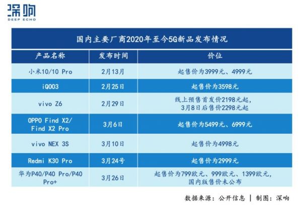 在开年至今三个月时间里,已有包括小米10/10 Pro、OPPO Find X2/X2 Pro、vivo NEX 3S、Redmi K30 Pro、华为P40/P40 Pro/P40 Pro+等产品发布。