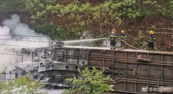 ▲ 消防人员在现场救援 / 中国消防官方微博