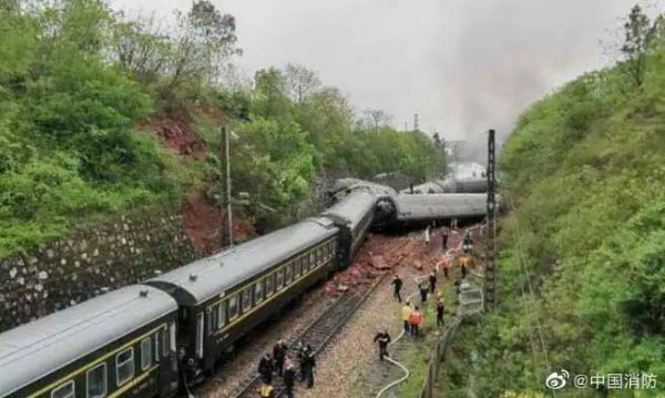 中国铁路广州局集团有限公司通报,11时40分,京广线马田墟至栖凤渡站下行区间因连日降雨发生线路塌方,T179次(济南至广州)列车运行至该区段时,火车司机发现后立即采取紧急制动措施,但列车撞上塌方体,机后第一节发电车起火,第二至六节车厢脱线倾覆。