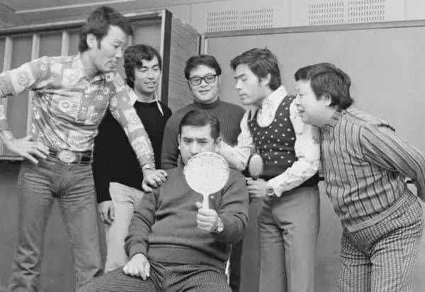 1974年3月,志村健先生(后排左二)的加入会见后,摆造型的 the drifters 成员