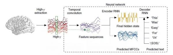 为了获得脑机接口直接解码语言更高的精度,研究人员利用了机器翻译任务与从神经活动解码语音到的相似性。也就是说,和机器翻译类似,解码语言也是从一种语言到另一种语言的算法翻译,两种任务实际上映射到同一种输出,即与一个句子对应的单词序列。只不过,机器翻译的输入内容是文本,而解码语言的输入内容是神经信号。