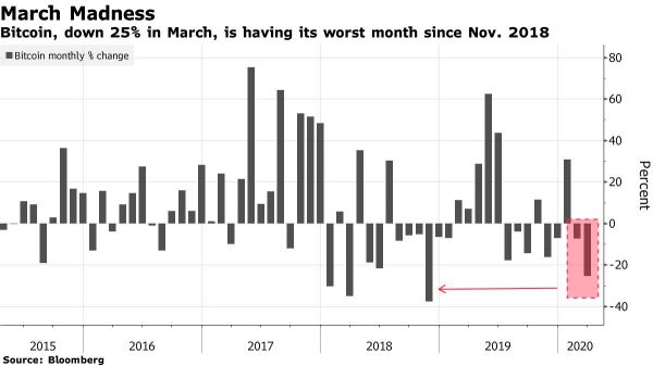加密货币没能幸免于疫情,比特币3月份大跌25%
