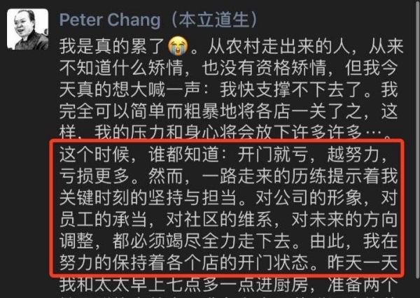 在社交媒体上就流传着华盛顿中餐连锁店老板Peter Chang“越努力,越亏钱”的感慨,引发共鸣。