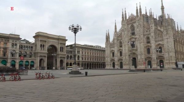 米兰大教堂前的广场,昔日站满了自拍的游客,如今只剩下饥饿的鸽子,无聊的警察,还有几辆孤零零的摩拜单车。