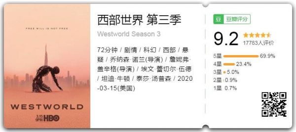 有对比自然有压力,据Variety.com报道,《西部世界》第三季首播吸引了90.1万观众收看HBO的直播,这个数据比第二季首播下降了57%。