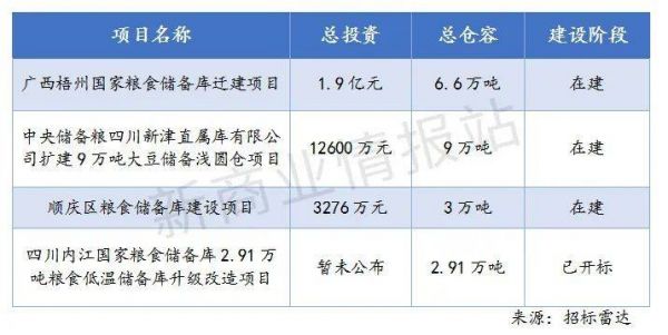 另有最新数据显示,一批现代化新粮仓建设在逐步开启。如,2月24日中储粮油脂成都基地所属新津库扩建9万吨大豆储备浅圆仓项目拉开复工帷幕,工人分批抵达工地。短短15天,浅圆仓已具雏形,各项施工工作正有序开展。下面是部分正在推进的粮食储备项目: