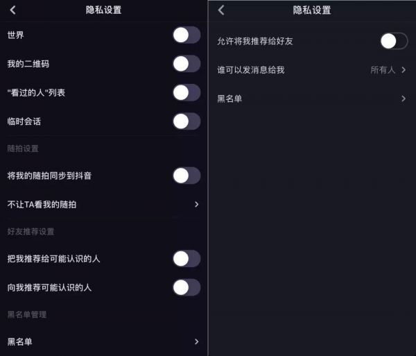 (左为多闪隐私设置,右为抖音的隐私设置)