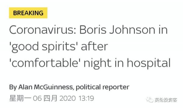 据BBC记者Laura Kuenssberg透露,鲍里斯于今天下午出现病情恶化,并于英国时间今晚19点被转入ICU,之所以转入ICU是为使用呼吸机做提前准备。