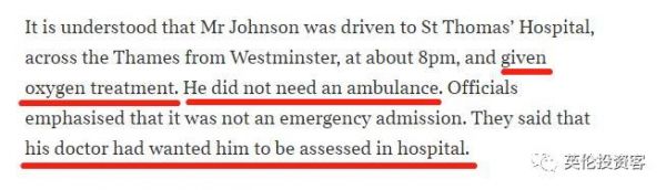 当晚18点,鲍里斯被送往伦敦圣托马斯医院(St Thomas Hospital)。