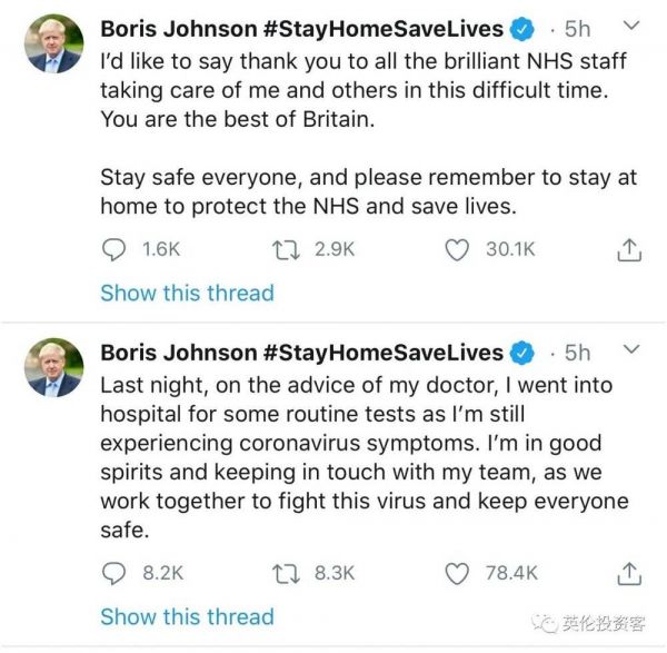 同时,为了让大家放心,鲍里斯还亲自发推公布了自己的状况,他表示自己精神状态良好,并将持续与政府团队合作抗疫。