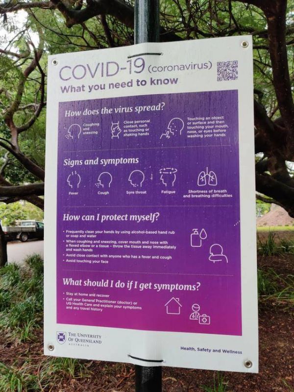 图:昆士兰大学校园内的防疫标识
