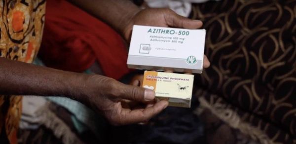 一位老人向记者展示自家剩余的抗疟疾药物。/YouTube截图