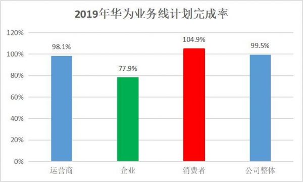 从上图可以看出,华为的运营商业务接近完成目标,消费者业务略微超过了年度目标,而企业业务则表现得非常不好,完成率仅为77.9%。