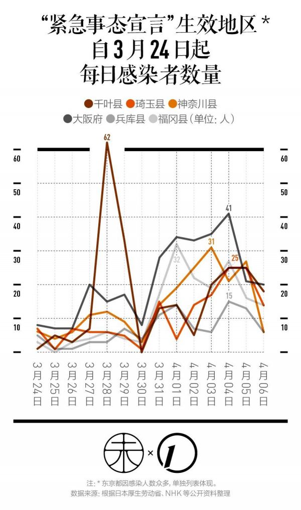 日本进入樱花季以来,尤其是 3 月 25 日开始,东京感染人数就持续高速增长。目前东京感染人数已过千,紧接着它的,是大阪、神奈川县、千叶县、爱知县、兵库县、北海道以及埼玉县。除北海道疫情相对得到控制之外,日本多个自治体感染人数都大幅增长。
