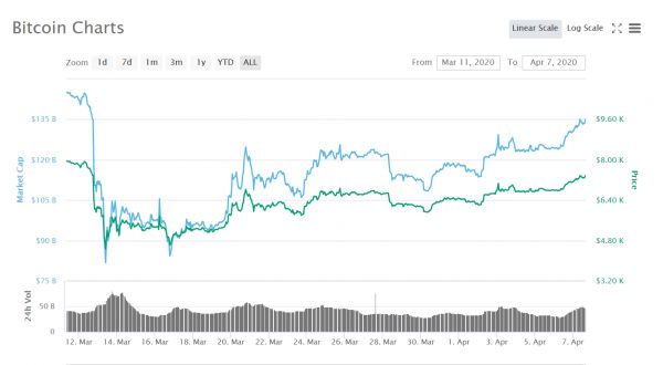他认为,当前出现了一系列利好刺激:市场对疫情控制的乐观态度,石油生产国可能达成的减产协议以及美联储的无限量宽松计划。这些利好使得流动性危机逐渐化解,市场悲观预期逐渐修正,而在危机期间包括股票和加密货币在内的风险资产价格都到了市场底部,因此金融市场都迎来强劲反弹,不仅仅比特币等数字货币价格大涨,全球主要股票市场、大宗商品市场均迎来一定程度反弹。