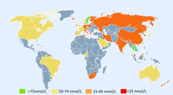 Wahl D A, Cooper C, Ebeling P R, et al. A global representation of vitamin D status in healthy populations[J]. Archives of osteoporosis, 2012, 7(1-2): 155-172.