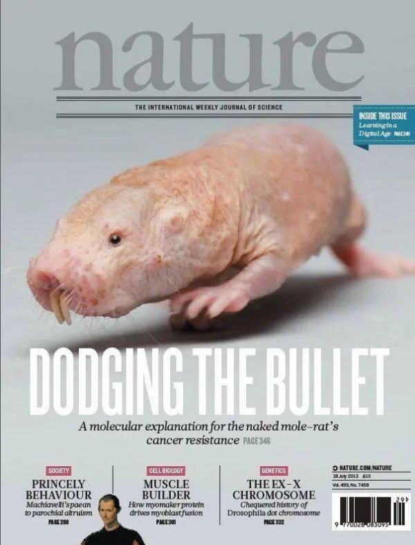 因为神奇的特性,裸鼹鼠一直是科学期刊上炙手可热的明星,图为2013年《自然》杂志封面(图源:nature)