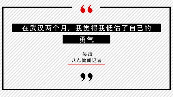 两个月在武汉,对我个人来说,我觉得我低估了自己的勇气吧。直到后期很多人找我说吴靖你真的很勇敢,然后我才意识到我可能真的是一个很有勇气的人,我以前是从来没有发现的。我现在回想一下,如果第二次再发生这种情况,我可能就不会来了,当时可能是无知者无畏的一个状态,但第二次来之后我可能顾虑就会更多一点吧。