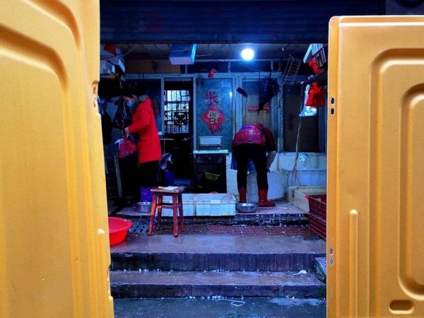 武汉逐步恢复活力,一家鱼铺的老板刚刚结束营业,在清理鱼缸,图片由受访者提供